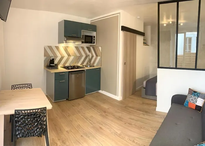 Appartement Avec Terrasse Au Coeur De Carcassonne - Serviettes Draps Menage Inclus van 30 m^2 ligt in Carcassonne op ongeveer 5 minuten lopen van de Calvaire Garden en biedt een uitzicht op de binnenplaats.